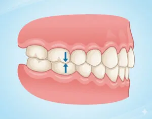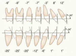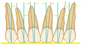歯が内側や外側に傾きすぎると、接触が不安定になります。